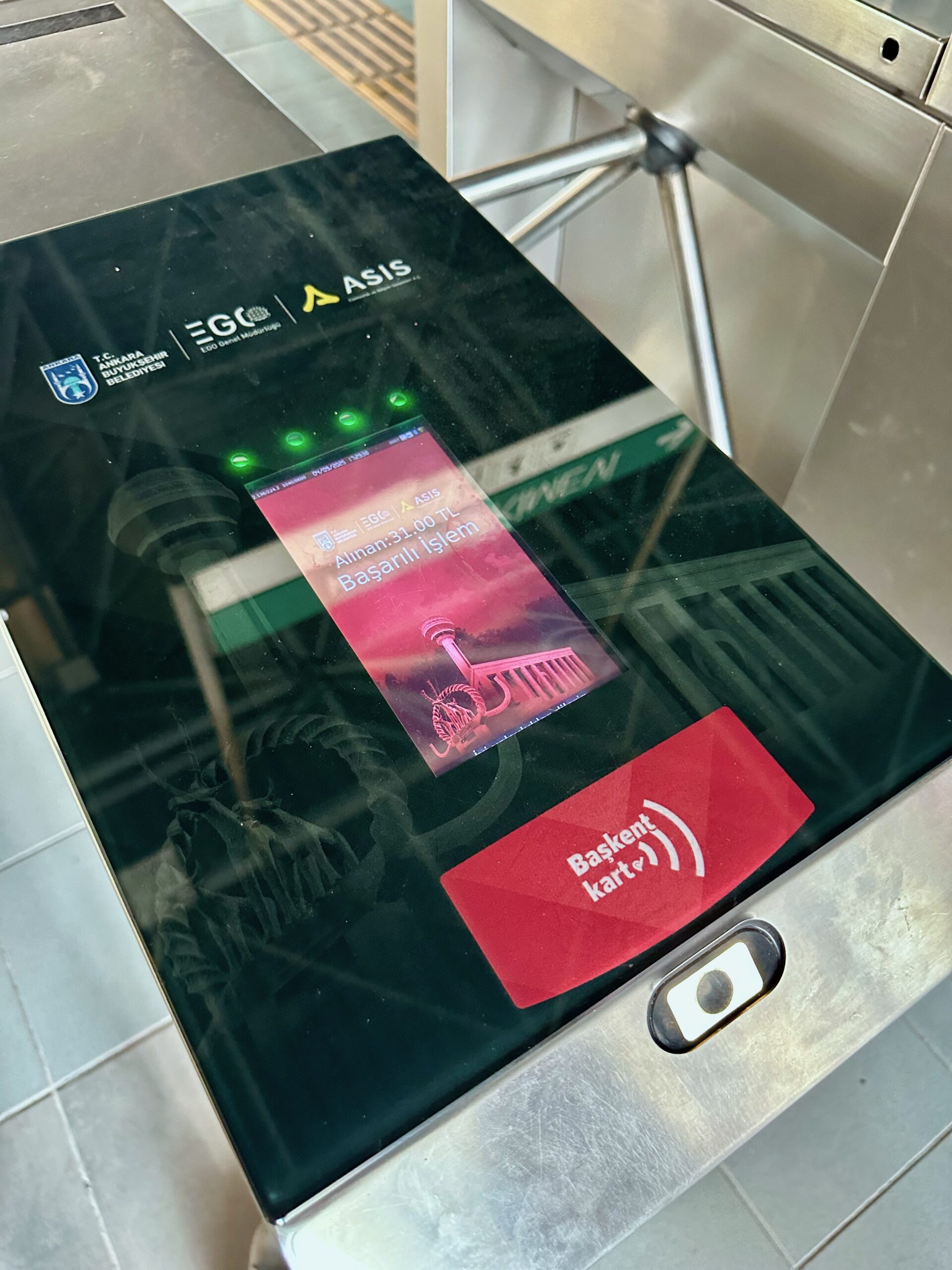 • Karta płatnicza (Visa/Mastercard zbliżeniowo): Działa przy bramkach jak bilet jednorazowy. Koszt 31 TL i brak zniżek na przesiadki – według nas najwygodniejsze, ale przy łączeniu przejazdów wyjdzie drożej niż AnkaraKart.