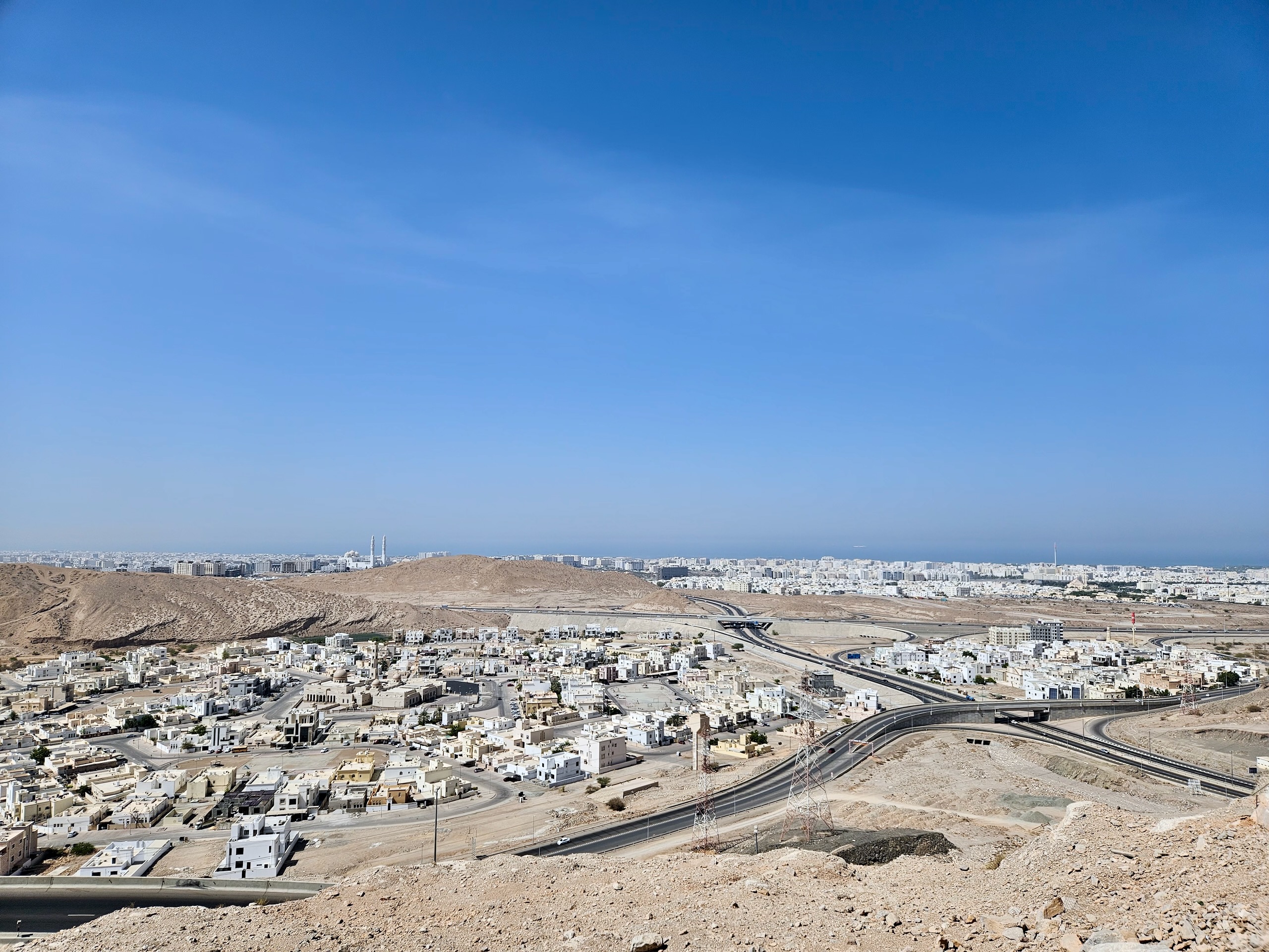 Najbardziej kupiło nas to, jak to miasto leży. Góry są dosłownie obok, morze obok, a wieczorem, przy zachodzącym słońcu, te skalne zbocza i cała okolica wyglądają naprawdę świetnie. I mimo że to stolica, tempo jest tu spokojniejsze niż w wielu „błyszczących” miastach Zatoki. Da się tu normalnie odsapnąć, a nie tylko gonić od jednego punktu do drugiego.