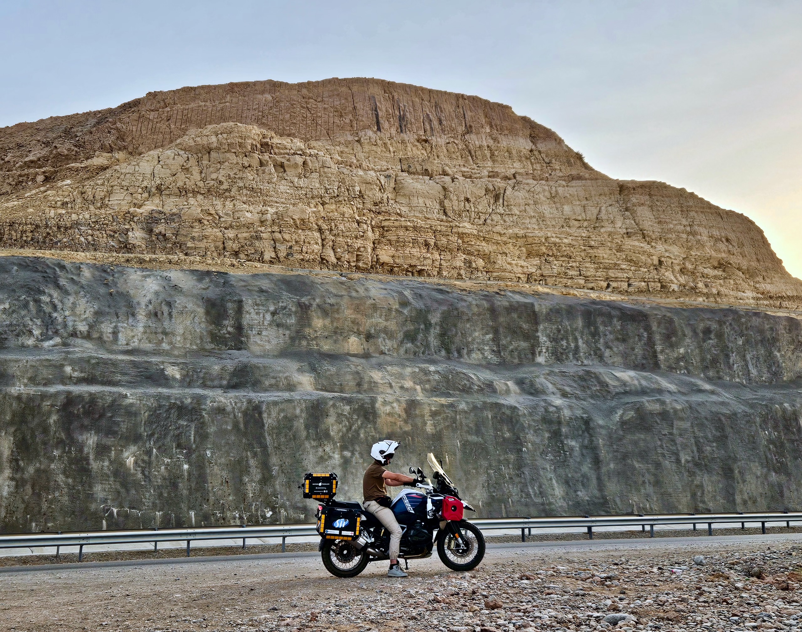 U nas weszło to od razu, kiedy nocą wjeżdżaliśmy do Omanu. Totalne WTF: wizjery parowały, okulary parowały, wszystko zaparowane, a powietrze jak mokry ręcznik. Dopiero po czasie dotarło do nas, że tutaj to normalka 😆 Momentami mieliśmy wrażenie, jakby ktoś włączył saunę w kasku.