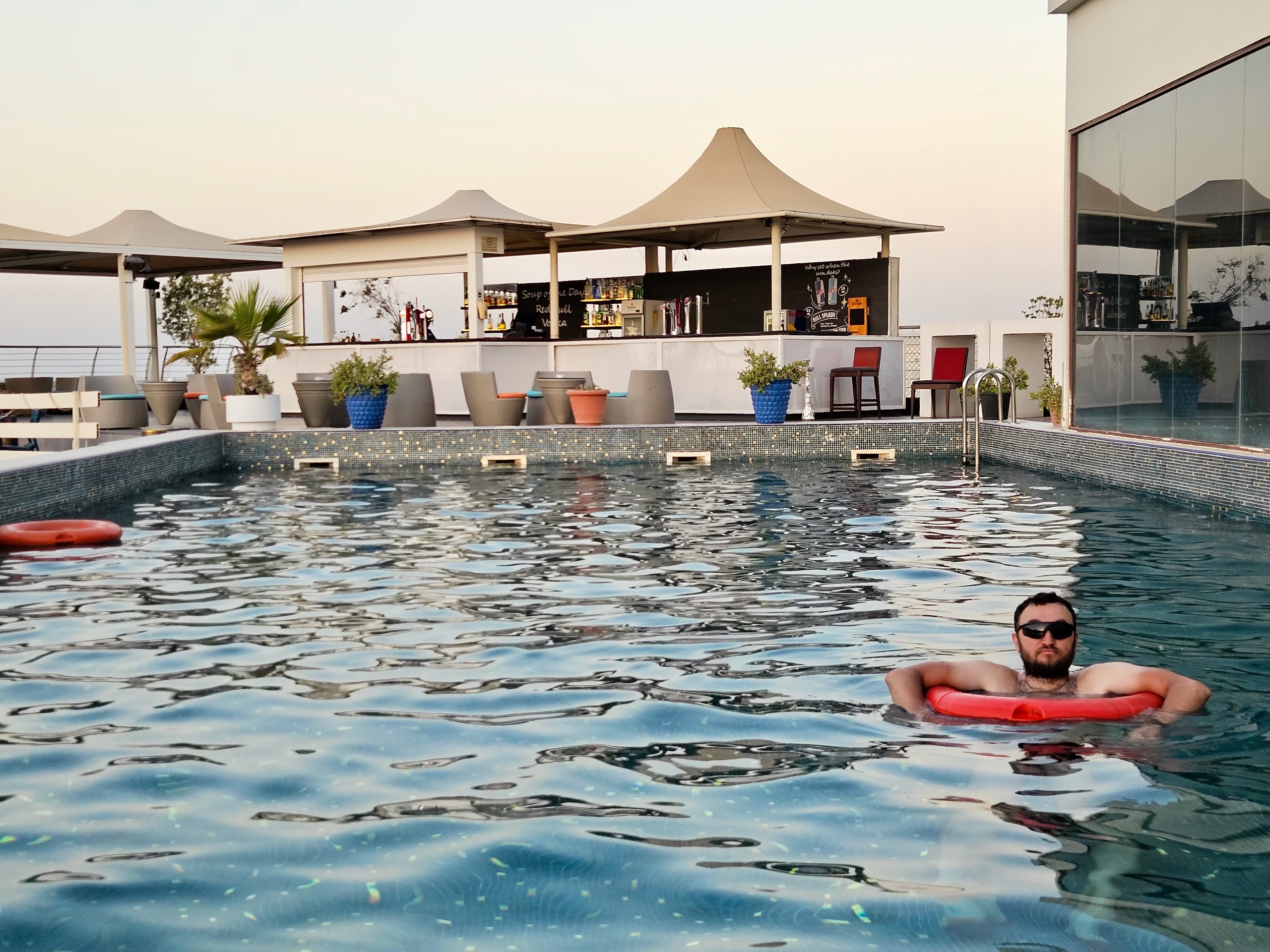 Na plus wchodzi też dach: jest basen, więc po całym dniu można złapać oddech i zrobić krótki reset. Da się też zamówić alkohol, tylko uczciwe ostrzeżenie: ceny potrafią zaboleć.