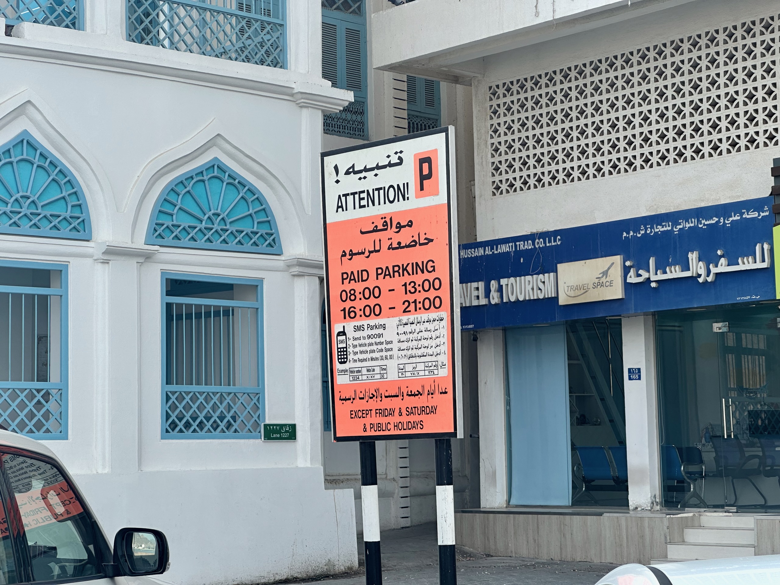 Najbardziej praktyczna rzecz pod kątem stolicy to parkowanie. W wielu miejscach da się stanąć normalnie i bezpłatnie, ale miasto ma też strefy płatnego postoju i tam już wypada się dostosować, bo mandaty wchodzą szybciej, niż człowiek zdąży powiedzieć „tylko na chwilę”. Muscat Municipality od dawna idzie w płatności elektroniczne: postój rezerwuje się na czas (od 30 minut wzwyż) przez aplikację Baladiyeti albo stronę urzędu, a w niektórych strefach działa też płatność SMS-em.