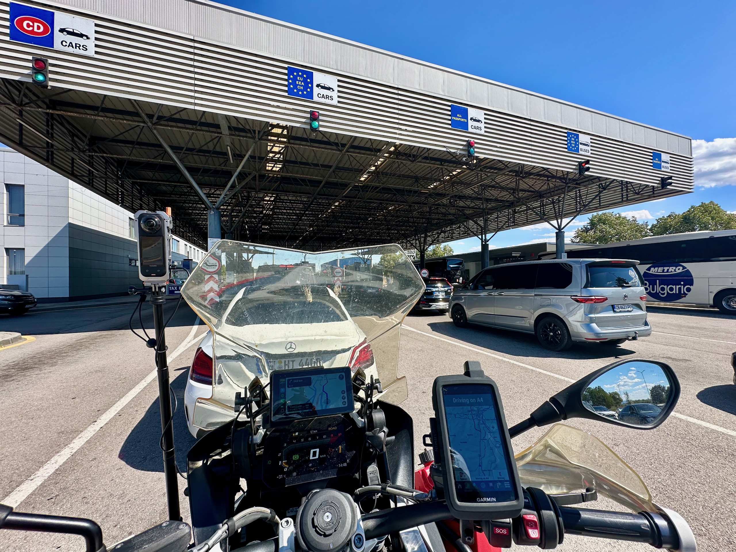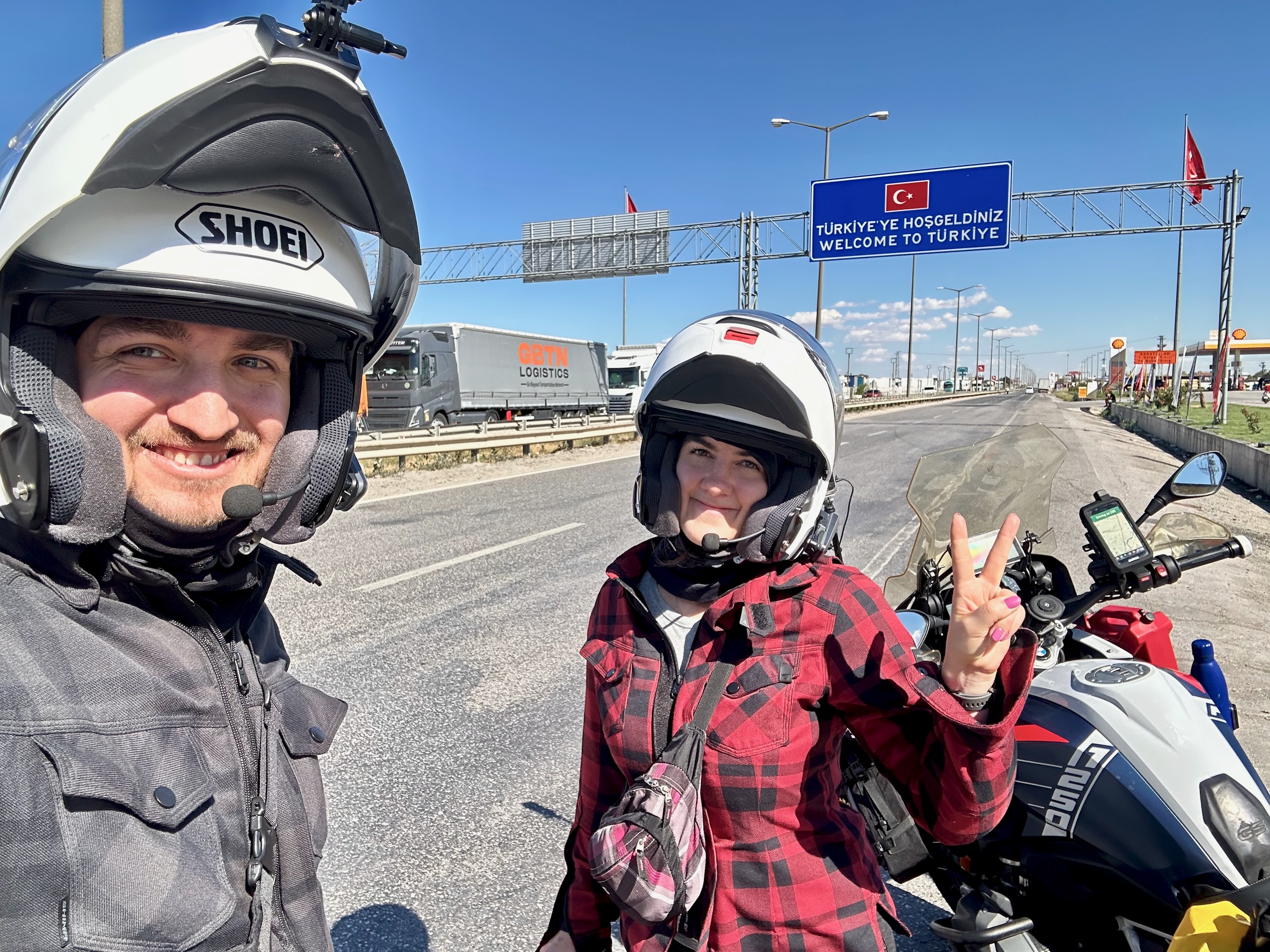Na granicy tureckiej zdążyłem jeszcze odbyć calla z pracy (tak, na przejściu granicznym 😆). Odprawa przebiegła sprawnie: tureccy celnicy poprosili o nasze notarialne upoważnienie do korzystania z motocykla — w dowodzie rejestracyjnym nie znaleźli naszych nazwisk, widniała tylko nazwa firmy leasingowej. Dokument się przydał. Przy takiej wyprawie lepiej być przygotowanym z papierami, niż potem się tłumaczyć. Jeśli chcecie zobaczyć, jak ogarnąć legalizację upoważnienia od leasingu, zerknijcie do naszych poradników. Na marginesie — strona Carnet de Passages twierdzi, że Turcja wymaga karnetu, ale w praktyce to nieprawda. Nawet ambasada Turcji potwierdziła, że nie jest potrzebny, więc tym razem pomarańczowa książeczka została w kufrze. Celnicy nie zaglądali do bagaży, więc po szybkiej fotce na granicy — ruszamy dalej!