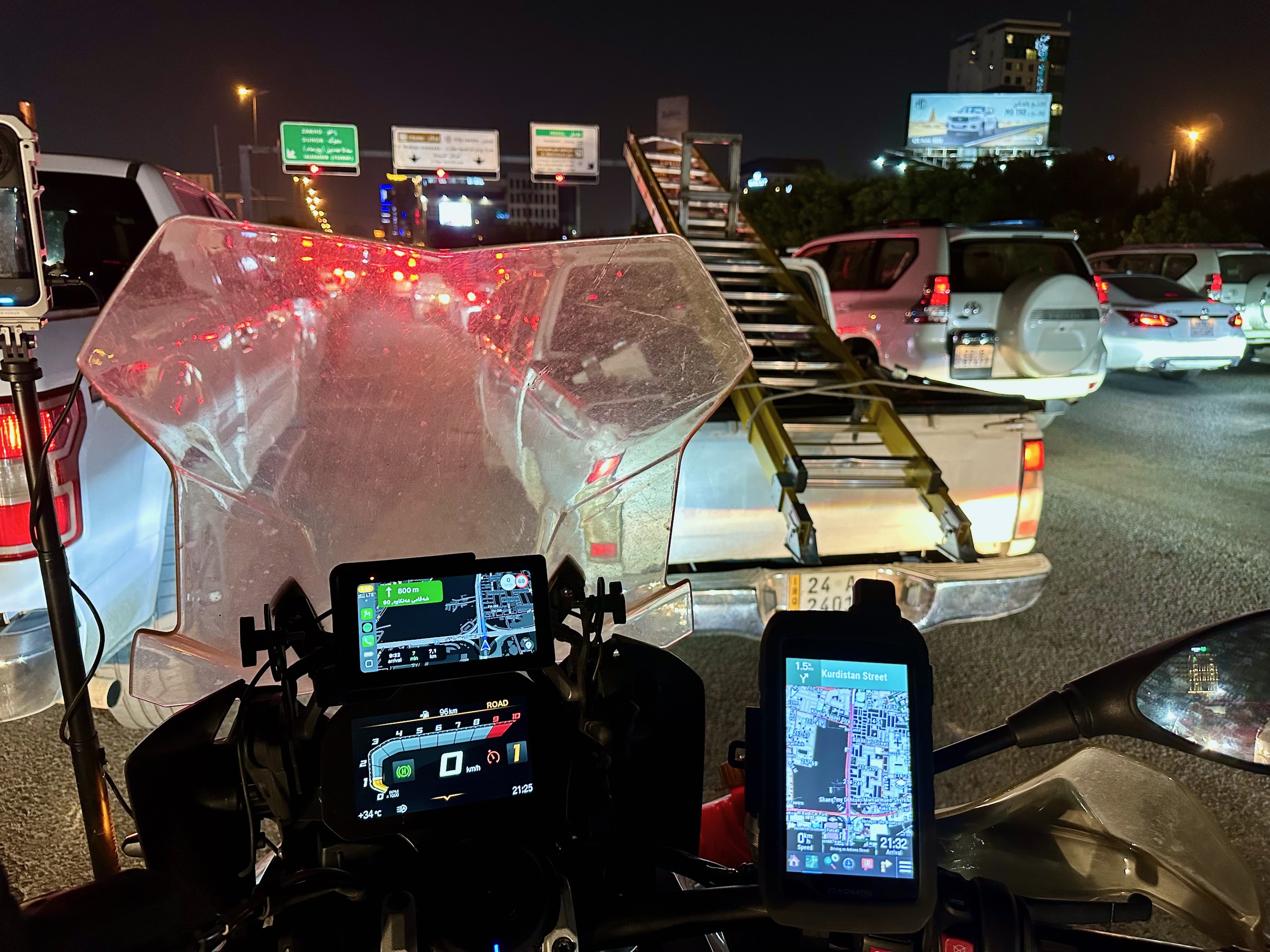 Ale na innej stacji paliw już odczuliśmy drobny scam: młodziak przy dystrybutorze wrobił nas, że za mało zapłaciliśmy za paliwo o 10 zł, co już wtedy powinno zapalić mi czerwona lampkę. Przy tej temperaturze nie było już siły na przepychanki – trudno, lekcja na przyszłość. Chwilę później inny małolat macał nam kamerkę na motocyklu i trzeba go było przegonić. Takie dwie wpadki pod rząd zapadają w pamięć, choć warto dopisać cały obraz: przez resztę pobytu w Iraku nic podobnego się nie wydarzyło. Wszędzie mogą się trafić ludzie, którzy wykorzystają chwilę nieuwagi – ważne, żeby nie uogólniać i pamiętać, że to wyjątki, nie reguła.