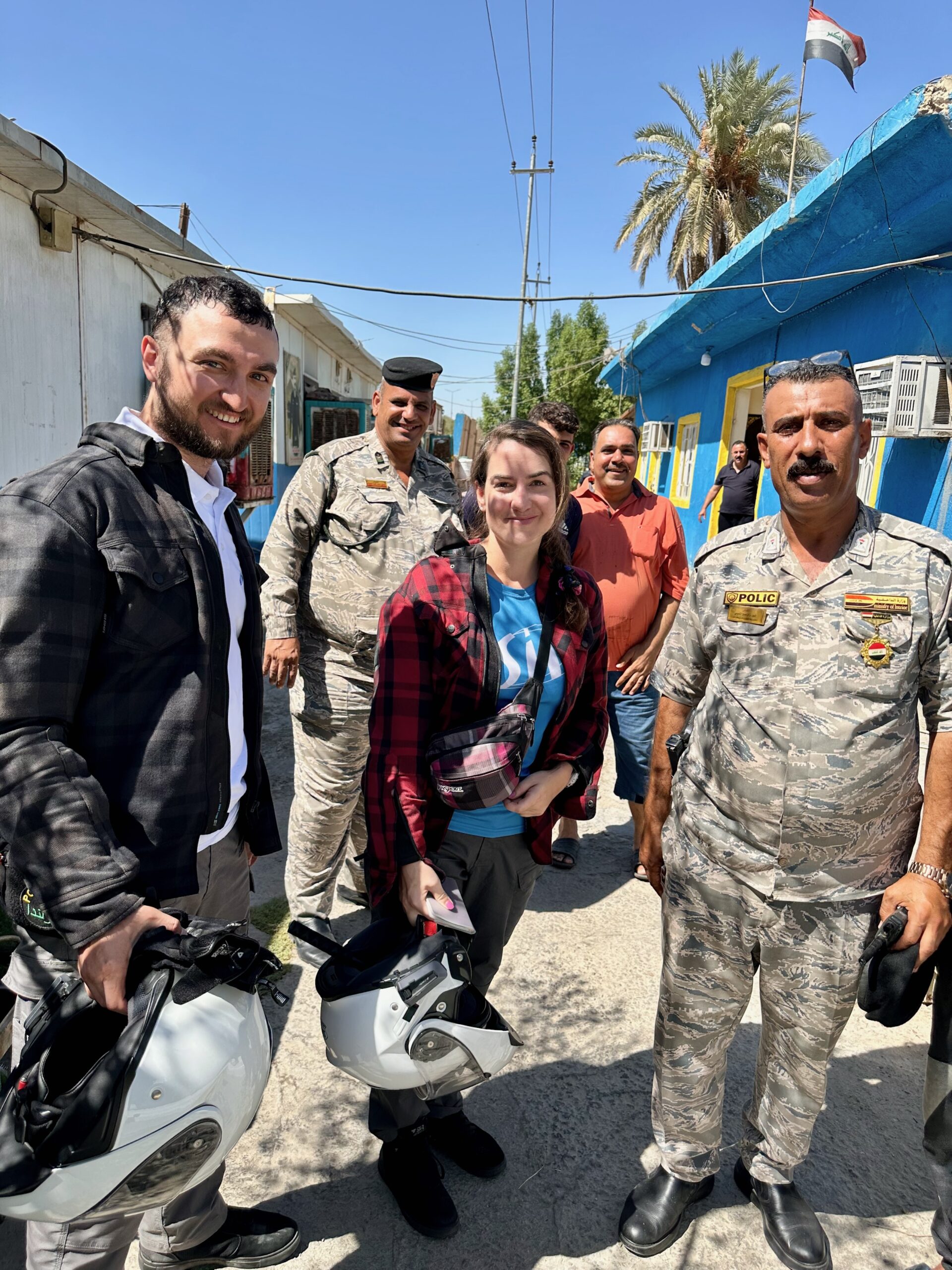 Kawałek za Erbilem jest pierwszy checkpoint do części federalnej. Checkpoint to po prostu punkt kontroli bezpieczeństwa prowadzony przez policję lub wojsko; zwalniasz, pokazujesz dokumenty, czasem zadają kilka pytań i jedziesz dalej. Funkcjonariusze zaprosili nas do budki, sprawdzili paszporty i wizy, dali nam butelki wody i powiedzieli wprost: jeśli cokolwiek poczujemy, że jest nie tak, dzwonimy na 911. To zmienia perspektywę jazdy. O tym, jak wygląda prowadzenie motocykla w Iraku z poziomu kierowcy — zasady na drodze, czego się spodziewać na checkpointach, czego nie robić — opowiadamy w osobnym tekście.
