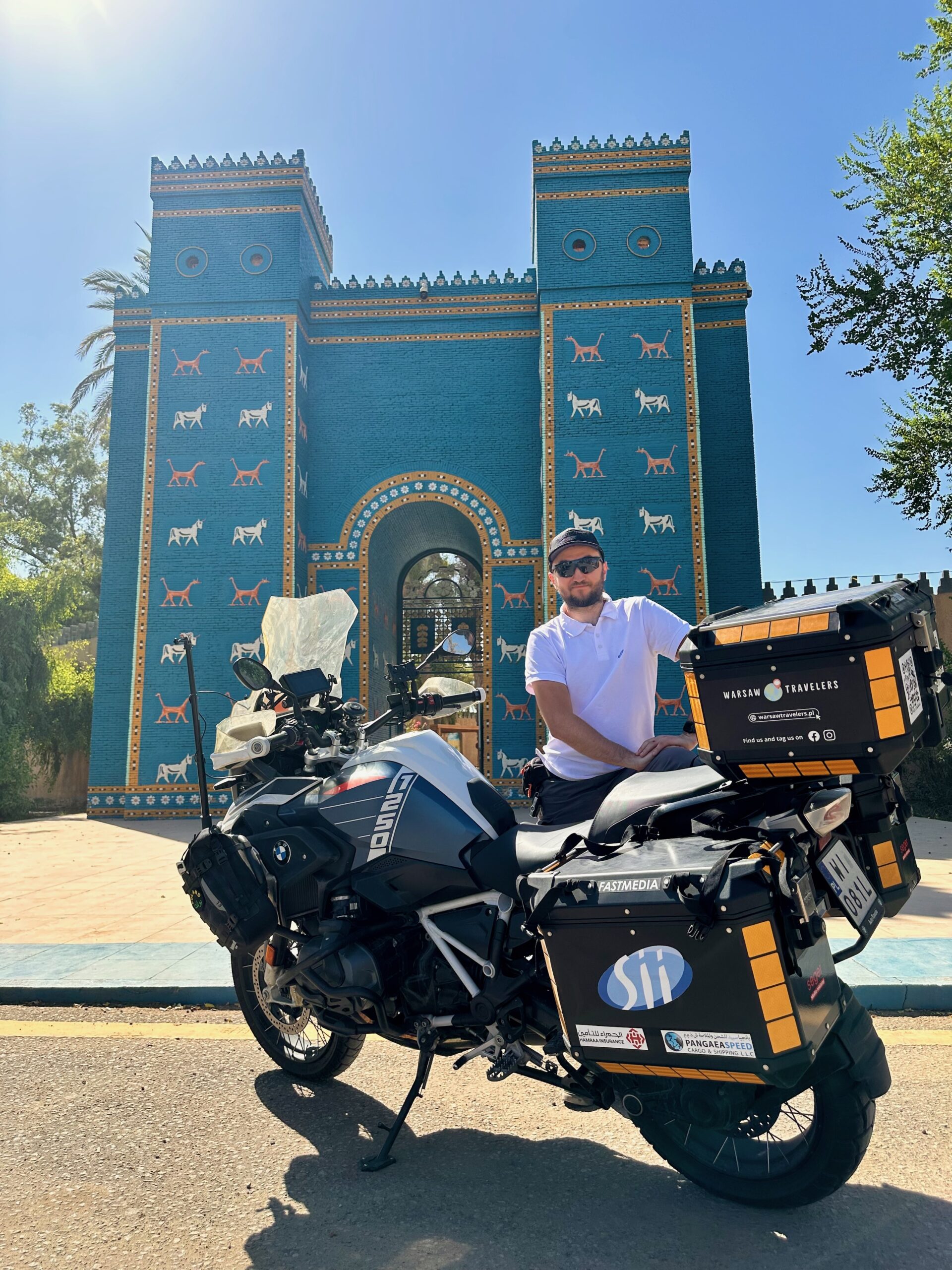 Po drodze minęliśmy bodajże sześć checkpointów. Na każdym zeszło od dwóch do pięciu minut: paszporty, wizy, czasem pytanie skąd i dokąd. Im bliżej Bagdadu, tym większy korek i gorszy asfalt. Fotoradary jakby się rozpłynęły. Na checkpoincie przy wjeździe do miasta staliśmy dłużej, ale tylko dlatego, że ogarniano dla nas wodę. Żołnierz oparty o lufę karabinu wyglądał jak kadr z filmu, a my robiliśmy na mieście za małą atrakcję. Trąbienia, machania, kciuki w górę — sporo sympatii.