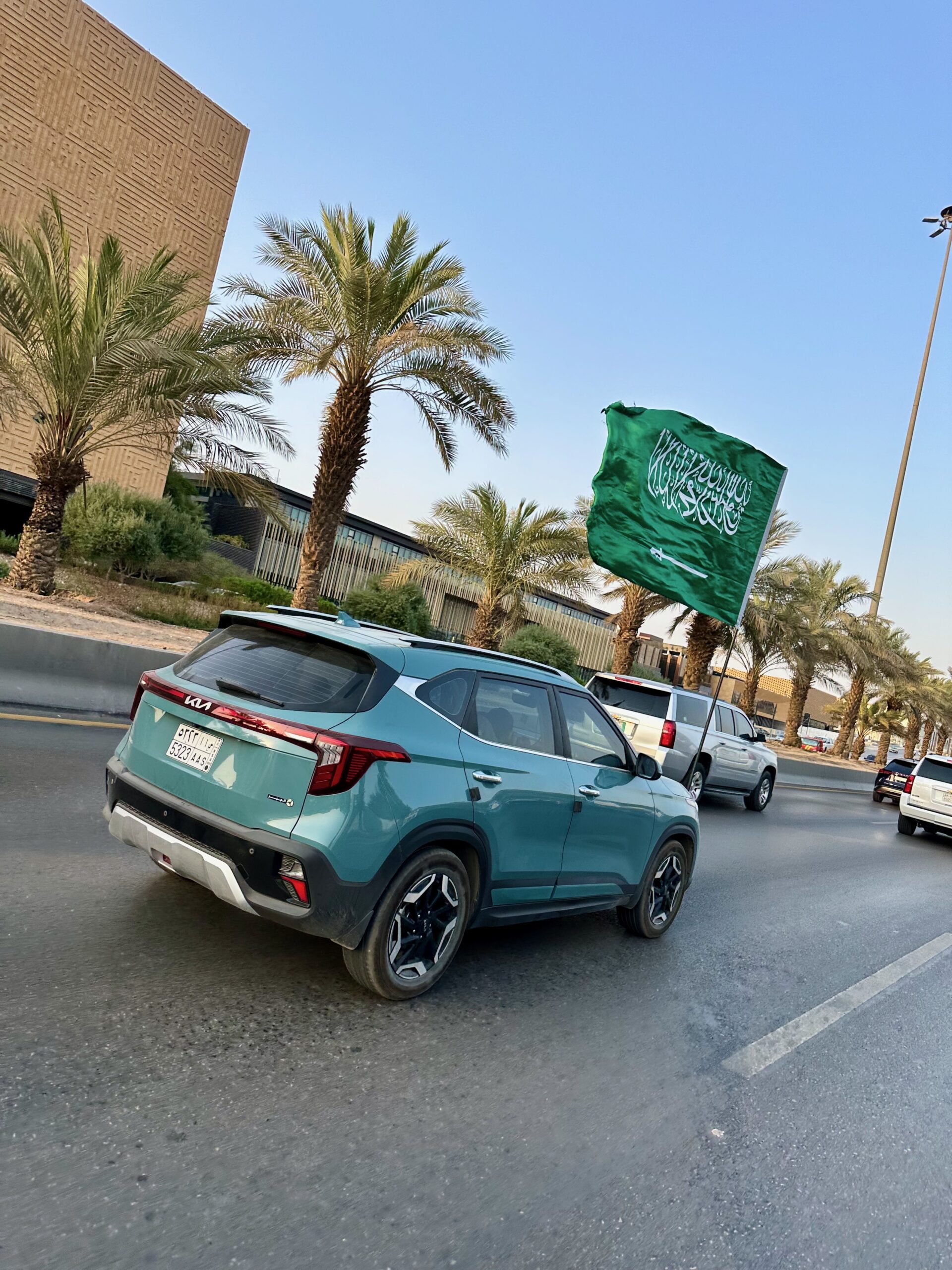 Im bliżej Rijadu, tym gęściej: ruch jak w mrowisku i wszędzie zielono-białe flagi. Dziś Święto Narodowe Arabii Saudyjskiej (Saudi National Day) — rocznica zjednoczenia kraju i proklamowania Królestwa Arabii Saudyjskiej w 1932 roku przez króla Abdulaziza (dekretem zmieniającym nazwę Królestwa Nadżdu i Hidżazu na KSA). Stąd chorągwie na wiaduktach, wielkie maszty montowane w gniazdach na haku holowniczym i pokazy lotnicze nad miastem. Świętują tu co roku 23 września — to ich stała data.