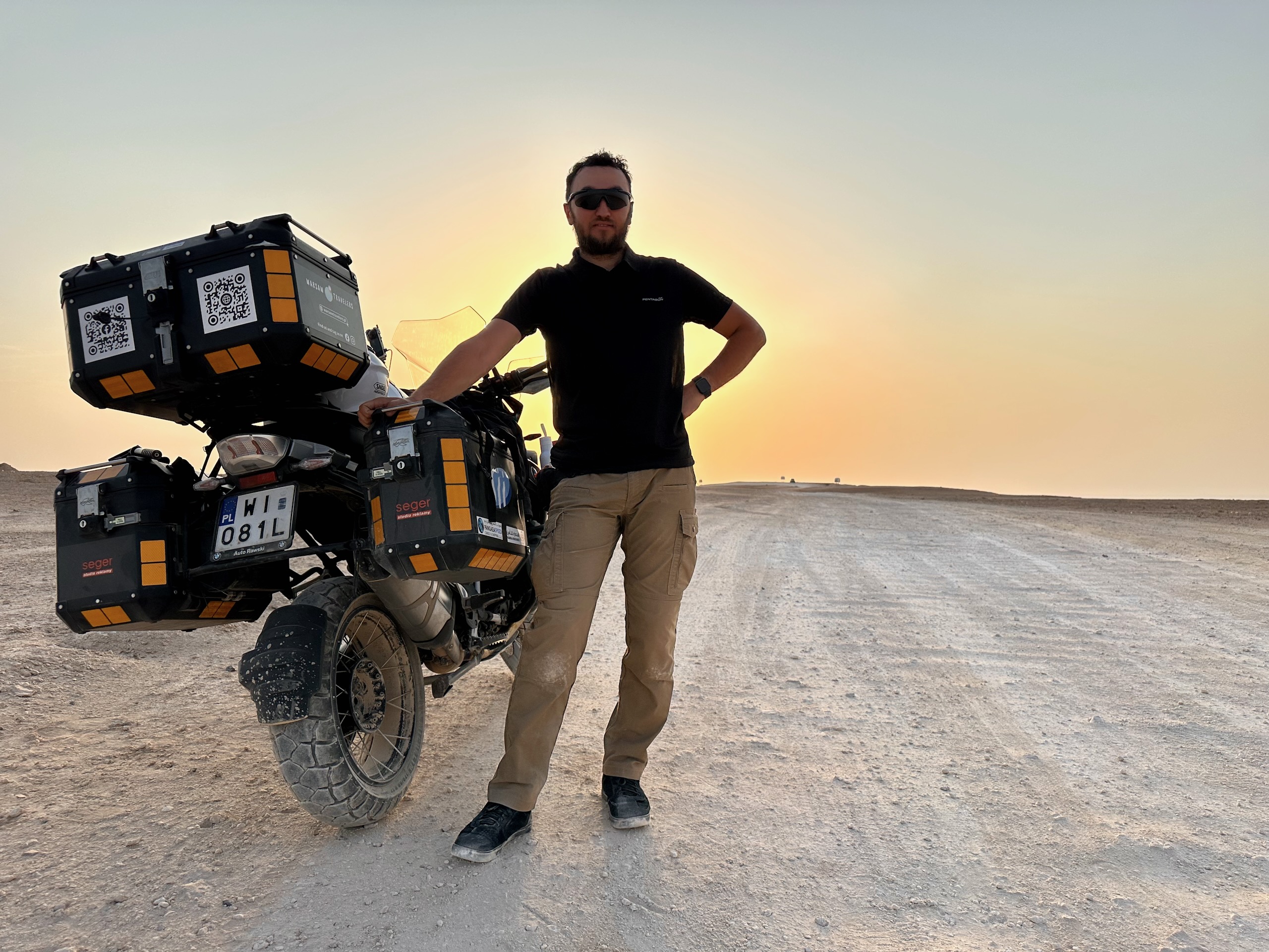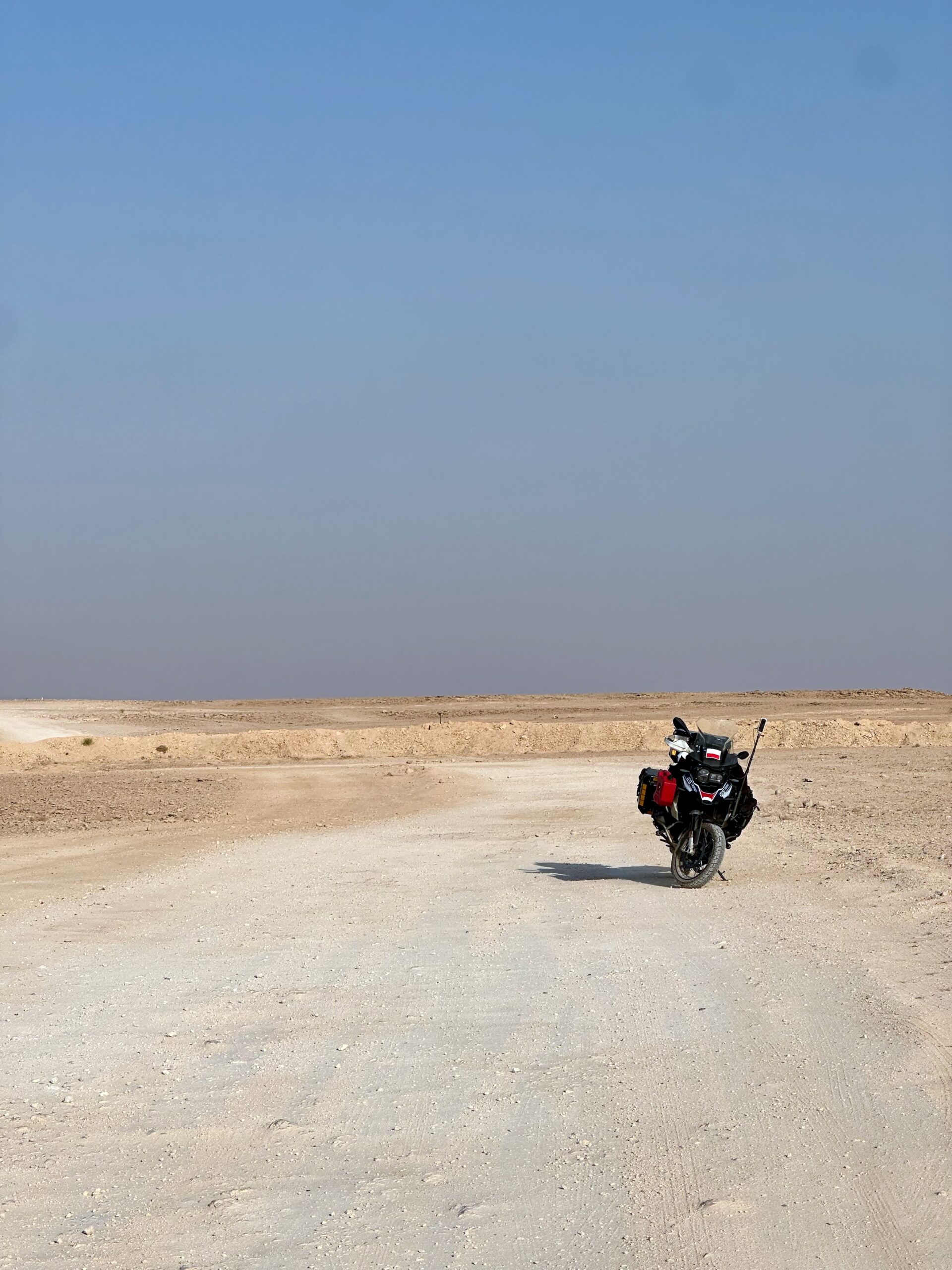 Do tego dochodzi proza życia: nie znałem tej drogi na tyle, żeby w nią wchodzić bez zaplecza, a miejsc do spania i tankowania po drodze brak (chociaż chyba jest… jedna). Po tylu kilometrach złapaliśmy też „kopa od wygodnictwa” — czyli zwyczajną mądrość, że czasem lepiej pojechać pewnym wariantem i dojechać w jednym kawałku. Kartek w Carnet de Passages nam nie brakowało, więc obraliśmy trasę przez Emiraty. Na Empty Quarter może przyjdzie czas — kiedyś, z chłodniejszą pogodą i lepszym planem. 😉