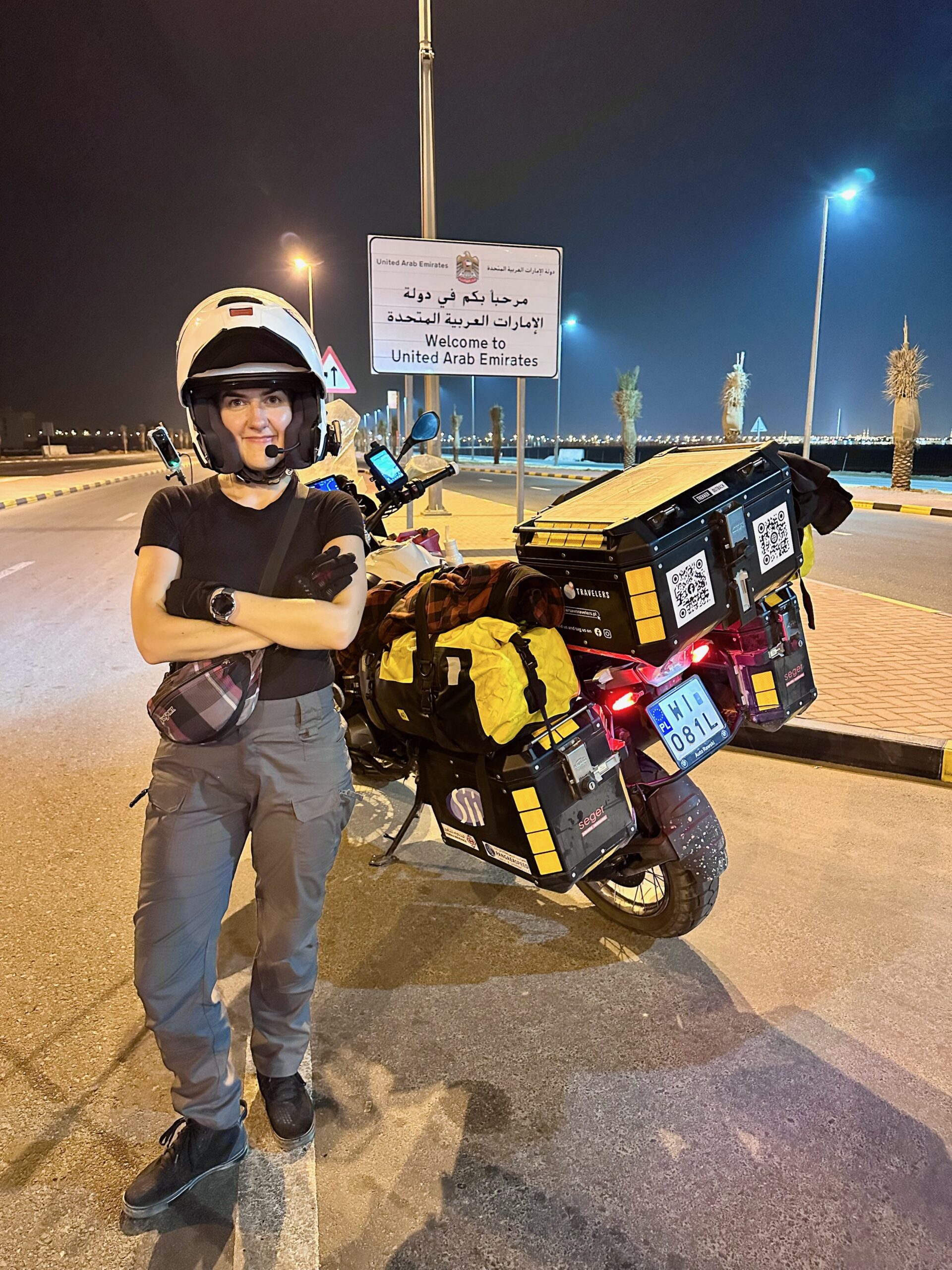 W Dubaju meldujemy się około 21:00. Pod hotelem kilka osób ogląda nasz motocykl jak eksponat – miłe zakończenie dnia. Mamy to. Jutro zrzut motocykla do Pangaea Speed Dubai – zespół ogarnia transport/relokację i dorzucili nam zniżkę, więc dzięki!