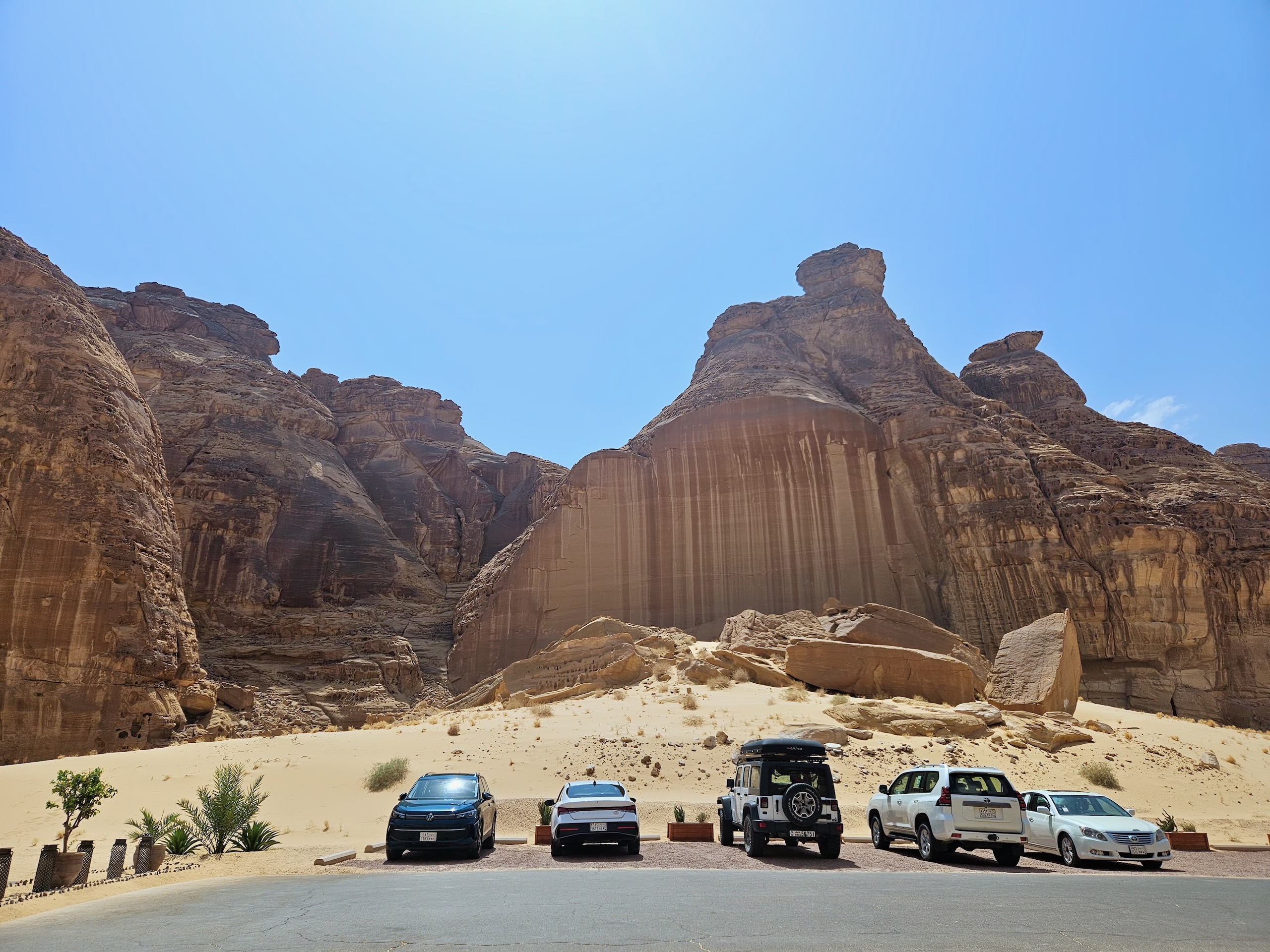 Up until now, Saudi Arabia felt more like a big-city destination to us, since we had previously been to Riyadh and Dammam. This time we arrived on our own wheels, after long hours and serious mileage on the road, so the vibe was different right from the start — less “flight–hotel–city” and more about the road, open space, and slowly taking in the place.