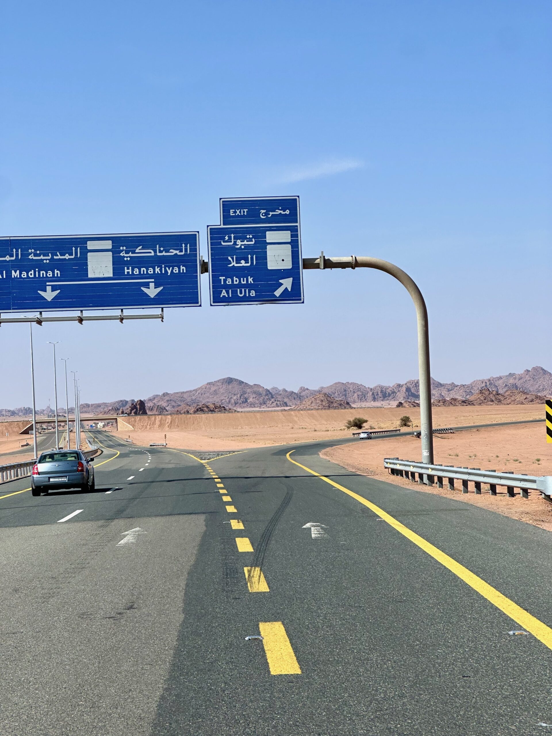 Getting to Al Ula is already half the adventure. As mentioned earlier, the region sits a bit off the main routes, but the road infrastructure is really well done – smooth asphalt and fuel stations at reasonable intervals. From major Saudi cities, the distances are quite substantial: from Riyadh it’s around 1,000 km, roughly 11–12 hours by car depending on breaks; from Jeddah about 700 km, around 7–8 hours of driving. From Medina it’s much closer — roughly 330 km and about a 5-hour drive.